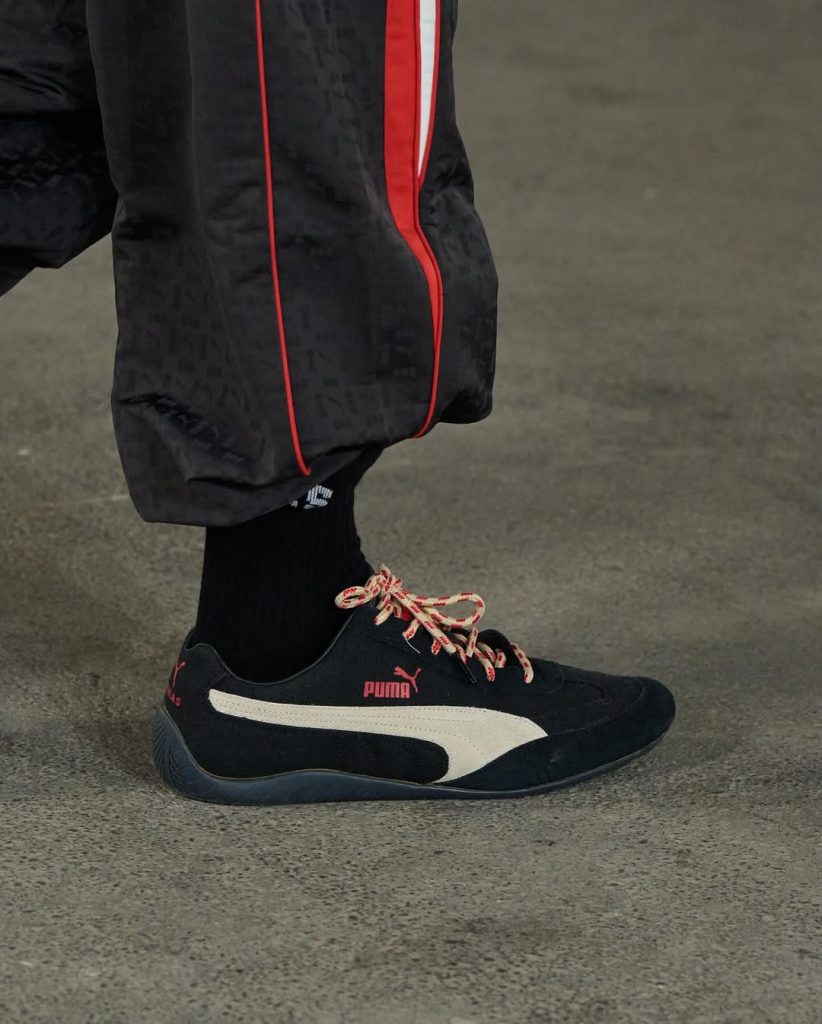 Alors que Puma multiplie les prises de parole — événements, rééditions et lancement de silhouettes à plateforme — la marque allemande s’associe au label californien Nahmias. Aperçue sur le podium parisien, cette collaboration intervient à un moment stratégique, alors que le phénomène Marty Supreme, popularisé par Timothée Chalamet, continue de gagner en visibilité. Une alliance pensée comme un levier de rayonnement culturel.