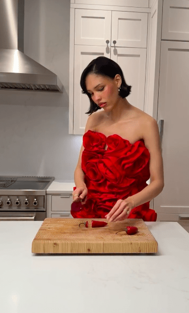 Sur Instagram et TikTok, la Française Roxane Tardy s’est imposée avec un concept aussi simple qu’efficace : assortir systématiquement sa tenue au plat qu’elle réalise. À chaque vidéo, elle répète son mantra — « J’adore assortir mes tenues à mes plats » — devenu sa véritable signature.