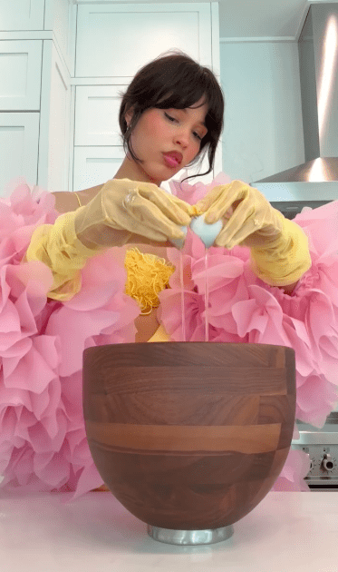 - et les marques — de Skims à Marc Jacobs — s’invitent subtilement dans cette esthétique hyper-domestique (un sac Marc Jacobs sortant littéralement du four étant l’exemple le plus emblématique).