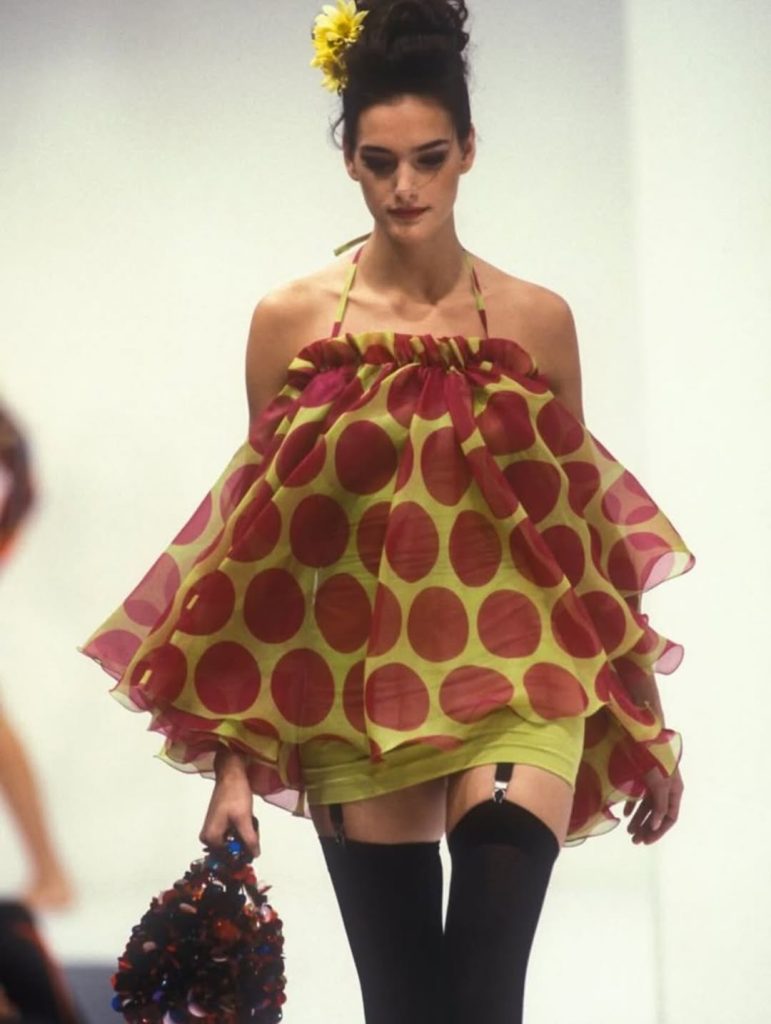 - une robe à pois Moschino réinterprétée en assiette de pâtes,