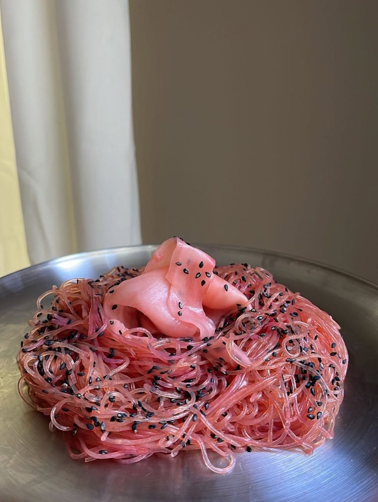 Aux États-Unis, Brianna Hollingsworth — alias Matrixxgirl — adopte une démarche similaire, mais encore plus conceptuelle. Son credo, « Turning runway into exquisite dishes », annonce clairement la couleur : elle convertit des silhouettes de podium en créations culinaires.