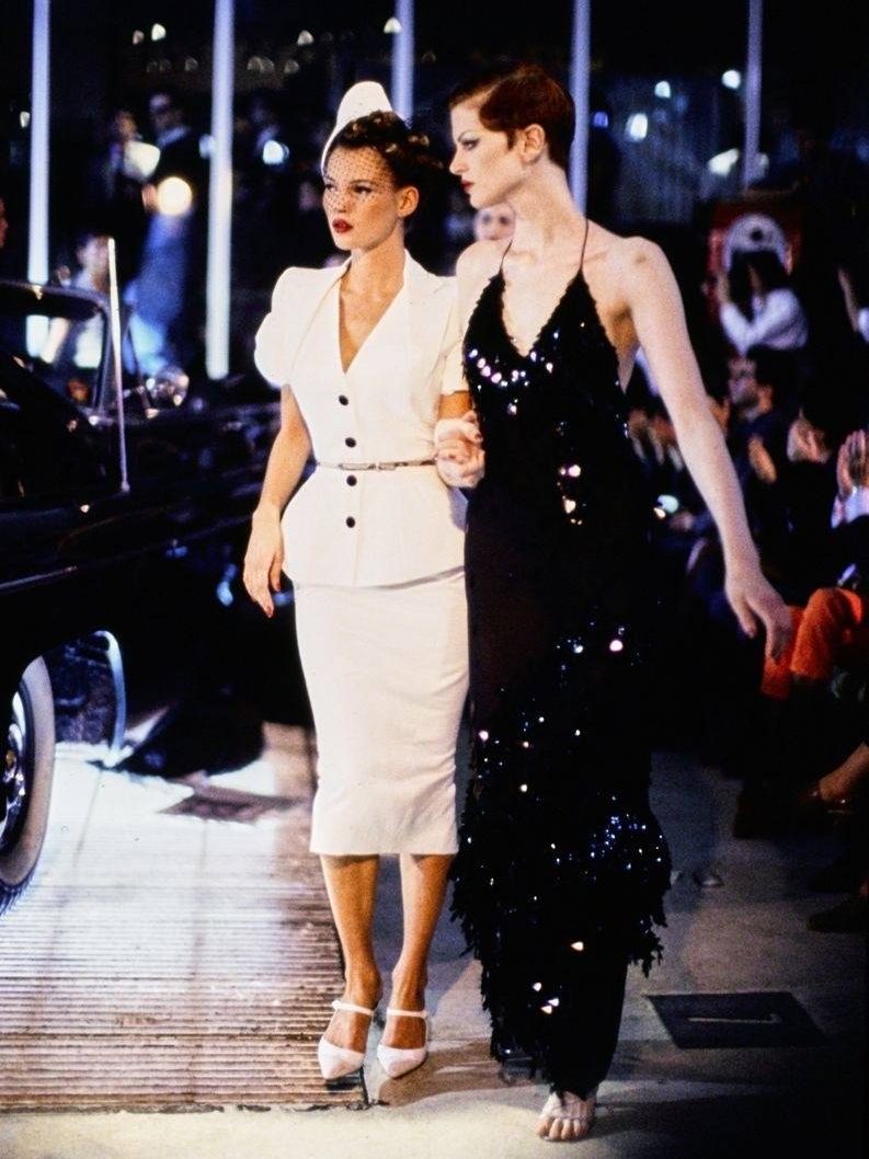 Certaines créations frôlent même le spectaculaire, comme ces robes « meringue » dont le volume envahit les premiers rangs. Parmi les tops à défiler ce jour-là : Linda Evangelista, Kate Moss, Naomi Campbell. Evangelista se laisse séduire par une robe jaune citron qu’elle convainc Galliano de lui offrir, avant d’en faire don au Met Museum’s Costume Institute, où elle est aujourd’hui conservée comme une pièce iconique.