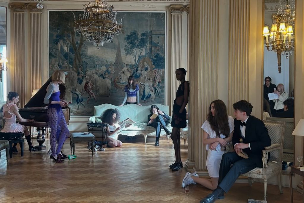 Lucila Safdie, de son côté, compose autour de l’idée de communauté. La créatrice argentine imagine sa collection avec ses proches, brouillant la frontière entre cercle intime et espace public. Dans un salon cossu aux accents du XVIIIᵉ siècle, les décolletés carrés de robes sages côtoient des transparences plus contemporaines. Une tension maîtrisée qui installe la designer au premier plan du paysage mode londonien.