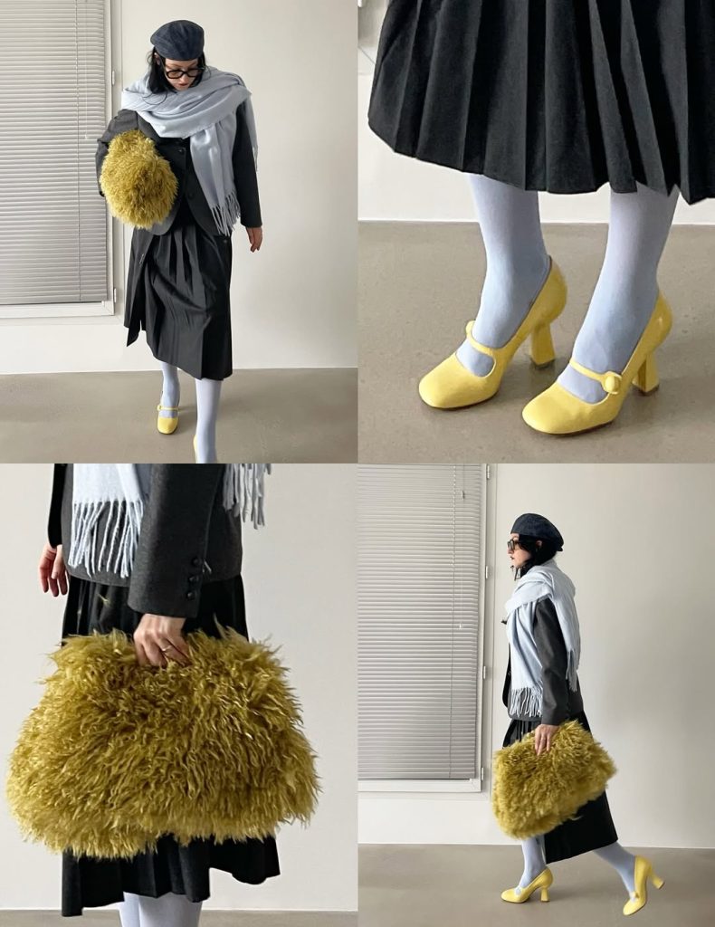 Dans ce contexte, le sac furry devient une pièce d’équilibre : il structure une silhouette monochrome, dynamise un manteau trop sage et réintroduit une dimension tactile dans le vestiaire.