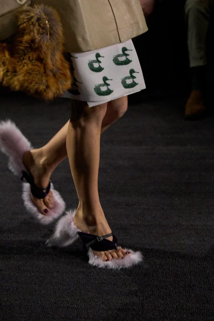 Le véritable tournant contemporain intervient au début des années 2010, lorsque Céline impose ses mules duveteuses lors de la collection Printemps 2013. Quelques saisons plus tard, Jonathan Anderson chez Loewe pousse le concept encore plus loin, explorant volumes exagérés et textures fantaisistes. Depuis, les hairy shoes se retrouvent régulièrement sur les podiums de Burberry, Gucci, Ferragamo ou Maison Margiela.