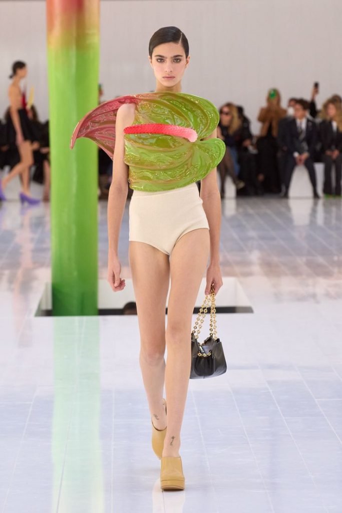 Ce qui fait la force de Jonathan Anderson, c’est sa capacité à faire dialoguer l’univers de la mode avec des disciplines aussi variées que l’art contemporain, la littérature ou le design. Chez Loewe, ses collections témoignent d’un esprit érudit et joueur. Ses sacs en forme de bottes d’asperges ou ses pulls à imprimés domestiques dépassent le simple clin d’œil : ils posent une vraie réflexion sur l’objet, la banalité, et la beauté du quotidien.