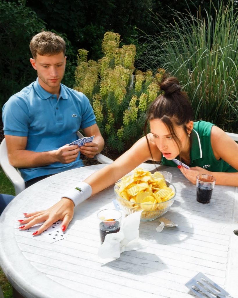 Barbecue entre amis, chaise de jardin, burger dégoulinant : l’esthétique se veut populaire, presque documentaire. Le polo, lui, reste au centre du cadre, comme un symbole intemporel revisité par le réel.