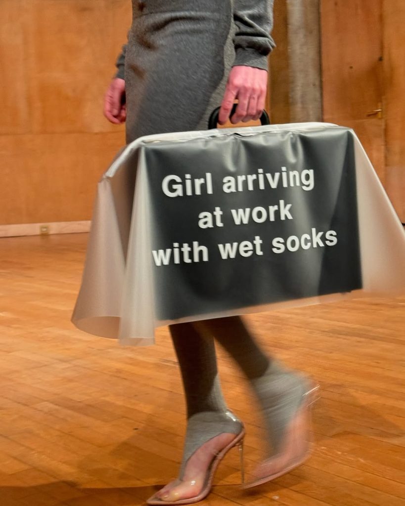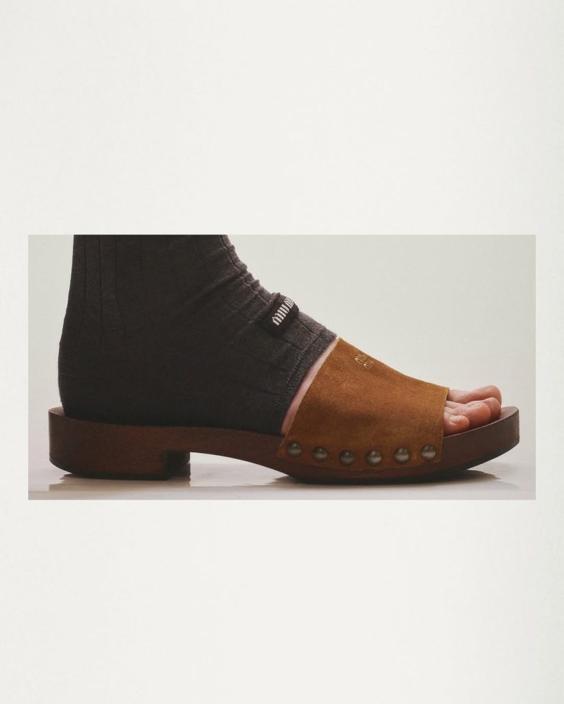Mais la tendance se tisse aussi en Belgique, où Julie Kegels, styliste anversoise à suivre de près, réinvente les accessoires avec malice. Sa marque propose notamment des « thong socks », version conceptuelle et épurée de la guêtre — un tube de maille qui laisse le pied nu. Portées par la créatrice de contenu Lara Violetta, ces pièces incarnent l’esprit minimal mais radicalement mode qui traverse la jeune scène belge.