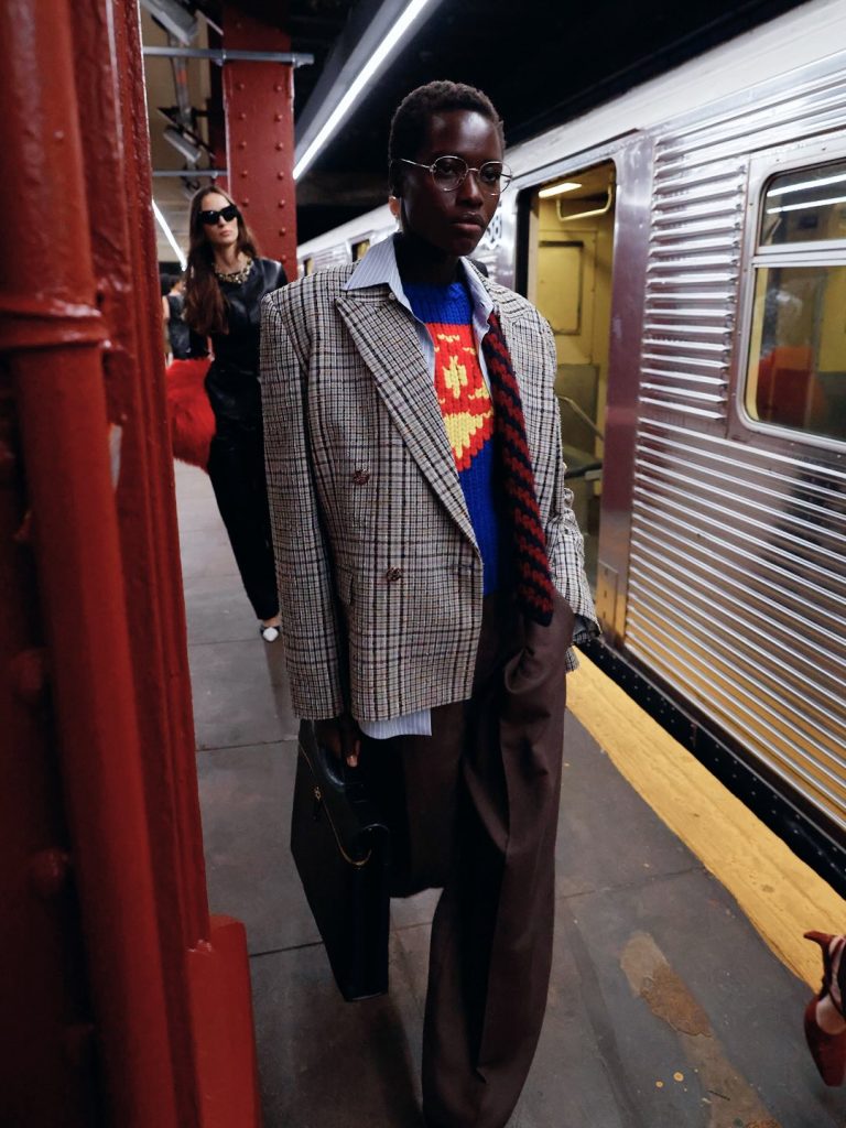 Le choix de présenter la collection dans la station de métro Bowery, à New York, n’a rien d’anodin. Lieu de passage par excellence, où se croisent toutes les strates sociales, le métro incarne parfaitement l’intention du créateur : abolir les frontières entre luxe et quotidien. Ce décor fait également écho à son propre parcours, marqué par ses années new-yorkaises chez Calvin Klein, aux côtés de Raf Simons.