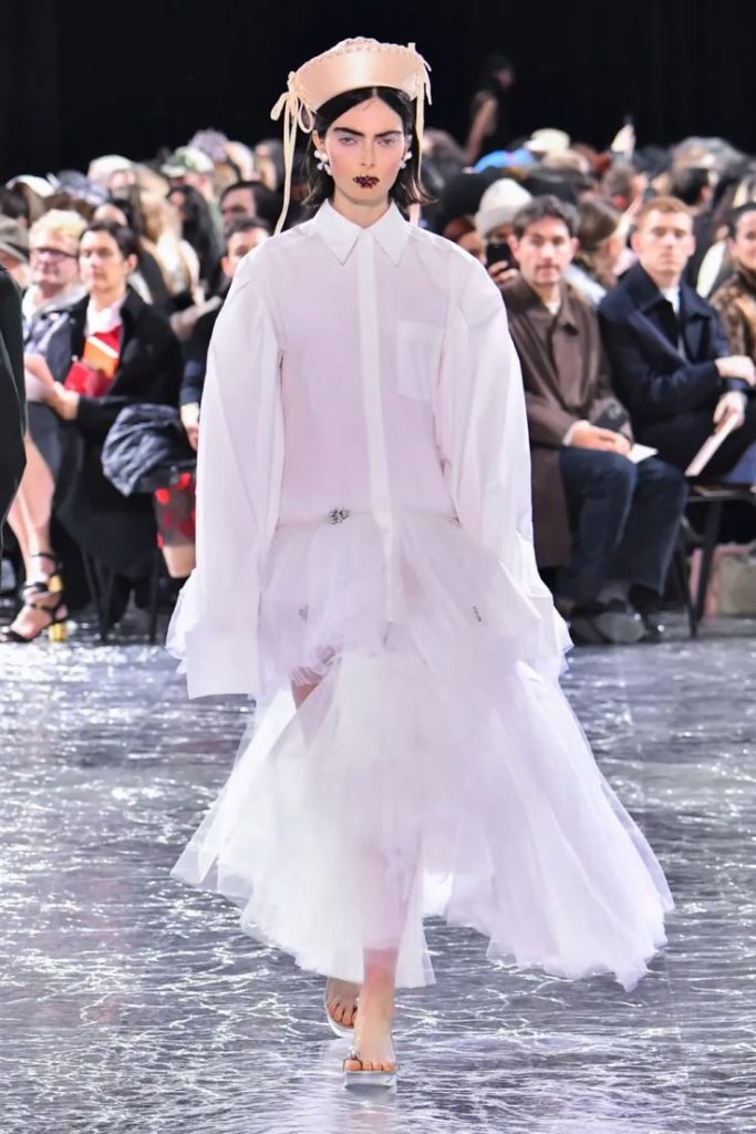 La source d’inspiration est claire : Jean-Paul Gaultier, figure absolue du sailor look. Et plus récemment, la collection couture printemps-été 2024 signée Simone Rocha pour Gaultier, où le chapeau, revisité dans un esprit néo-romantique, attire toutes les attentions.