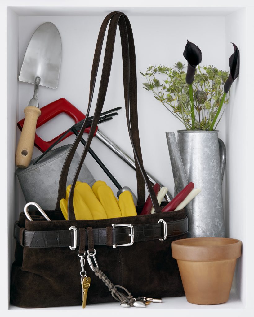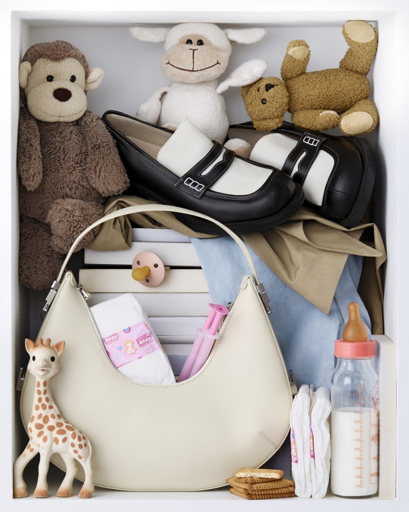 Depuis, la maison multiplie les collaborations avec des photographes parisiens. Avec Lebon + Bourgeois, le résultat est minimaliste et sculptural : les sacs reposent sur des corps nus, magnifiés par la lumière et les ombres, comme des objets d’art. À l’opposé, Pierre Tostain injecte une dimension ludique avec des clichés colorés, où les sacs cohabitent avec des objets du quotidien — papier de bonbon, balle en plastique — rappelant qu’ils sont faits pour vivre, s’user, s’aimer.
