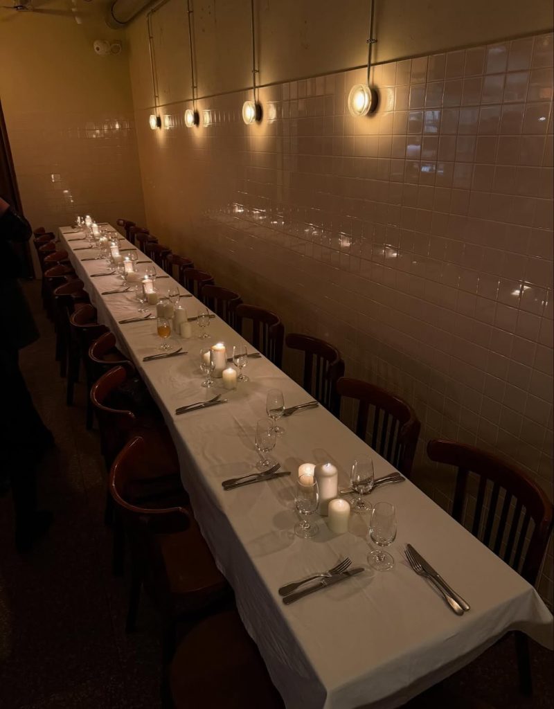 Autre spot incontournable, L’Oursin s’est imposé depuis l’été dernier comme un lieu convivial où les conversations se prolongent souvent bien après le repas. Il n’est pas rare que la soirée se poursuive chez Jeannette ou au Mauri7, repaires nocturnes prisés pendant la Fashion Week. Lors de la dernière édition, on y a notamment croisé Alex Consani ou Charli XCX.Pour une entrée en matière plus calme, La Boule Rouge, imaginé par le créateur de Tempête, offre une alternative plus feutrée. Les noctambules les plus endurants poursuivent ensuite au Pamela ou chez Essaim, où la fête s’étire jusqu’au petit matin.