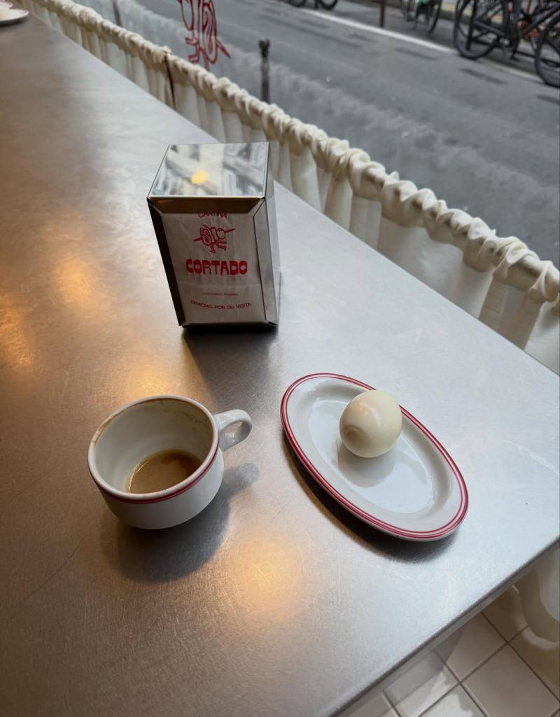 Cortado, à mi-chemin entre coffee shop et bar d’inspiration espagnole, s’impose comme une halte idéale, que ce soit pour un café rapide ou un dîner tardif. L’adresse, déjà fréquentée par Rosalía, attire régulièrement professionnels de la mode et créatifs.