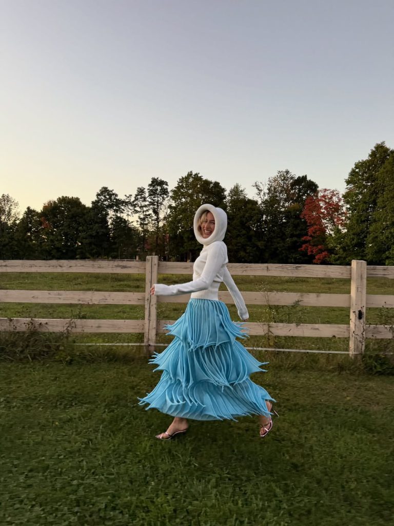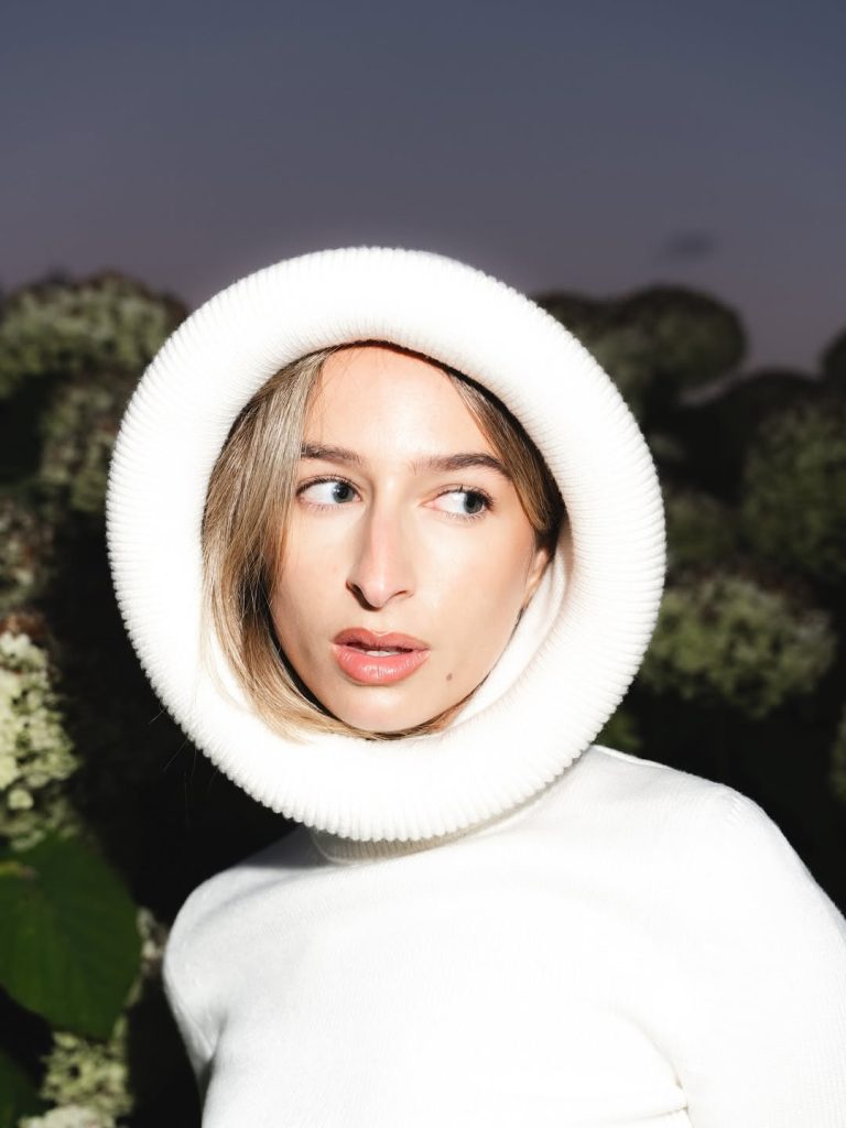 La capuche devient rapidement l’une de ses signatures, détournée et intégrée aux robes ou aux manteaux comme un prolongement naturel de la silhouette. Loin de toute nostalgie, Mulier propose une lecture résolument contemporaine d’Alaïa.